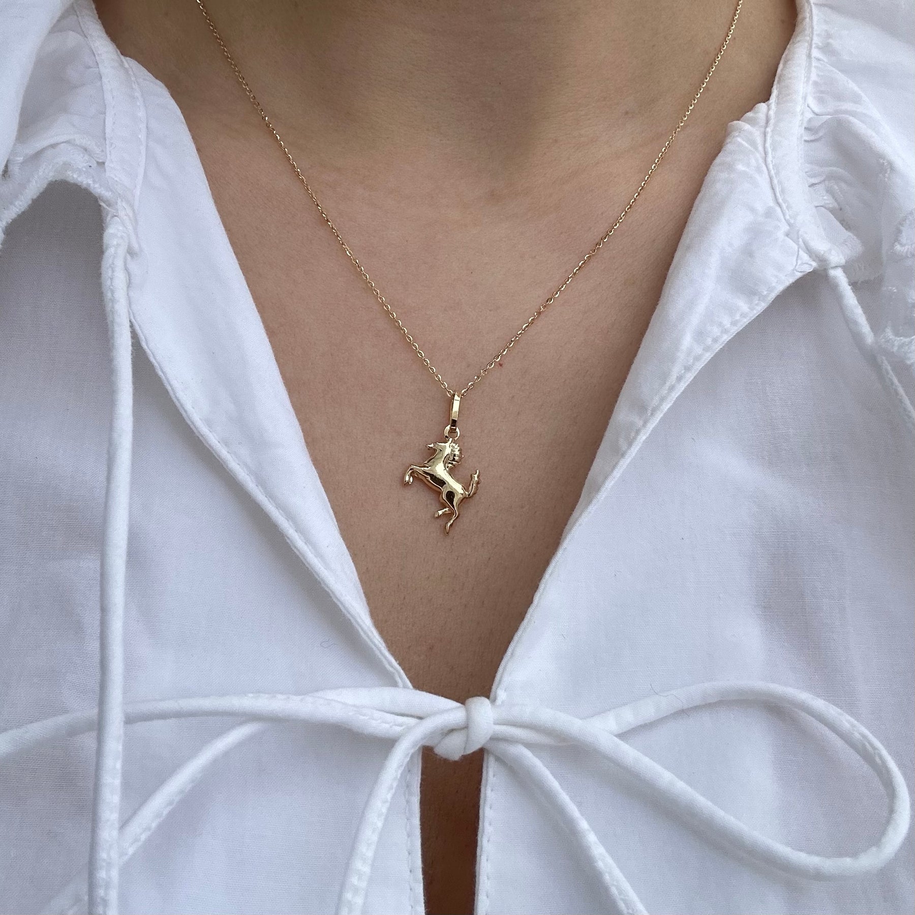 Der Pferdeanhänger aus massivem 750er Gold ist ein Meisterwerk der Schmuckgestaltung und ein Symbol für Luxus und Eleganz. Das Design des Anhängers ist von einem majestätischen Pferd inspiriert und zeigt jedes Detail des Tieres in faszinierender Präzision.
