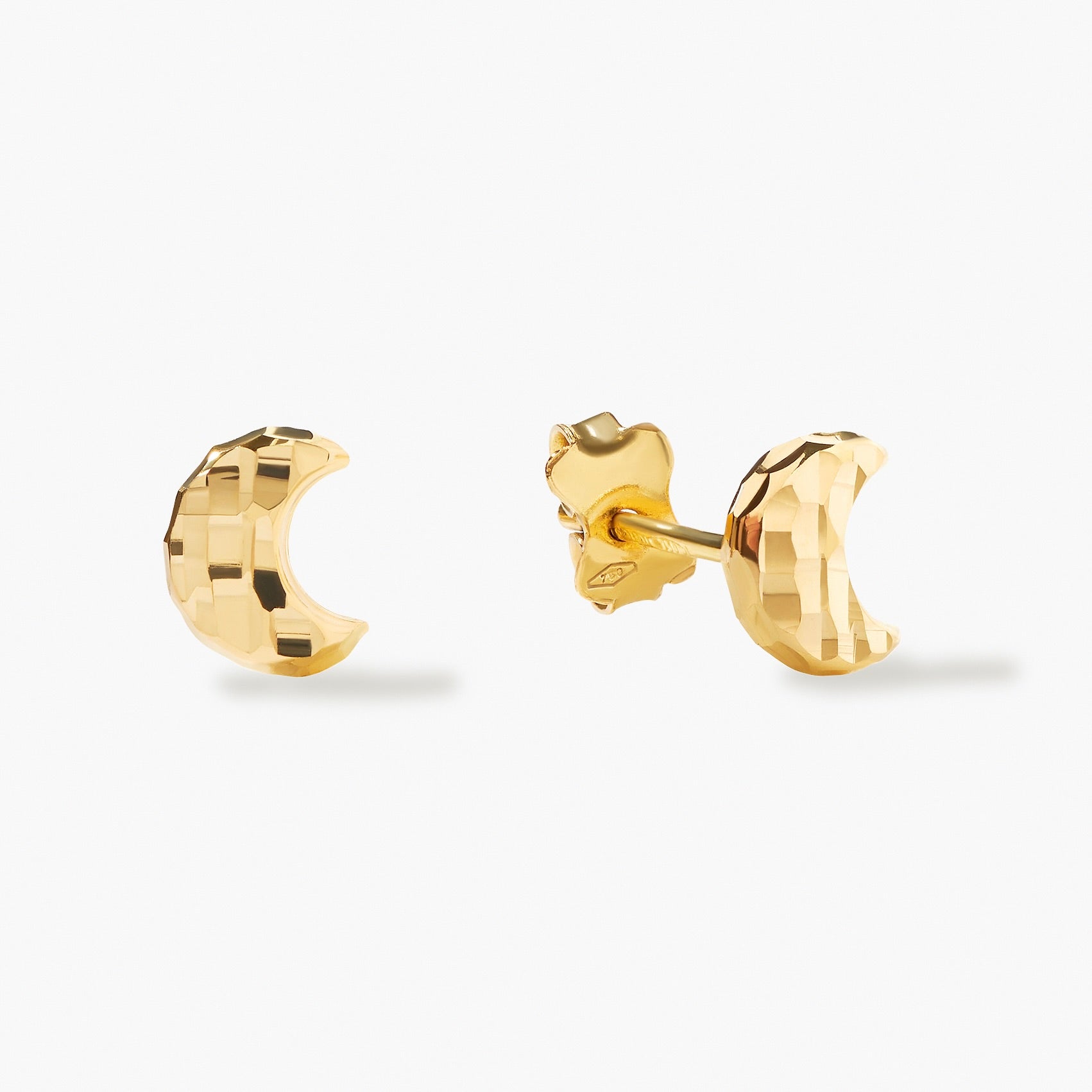 Dieser elegante Ohrstecker aus 18 Karat Gold besticht durch sein raffiniertes Design in Form eines Halbmondes. Die fein gearbeitete, facettierte Oberfläche reflektiert das Licht auf besondere Weise und verleiht dem Schmuckstück einen edlen Glanz.