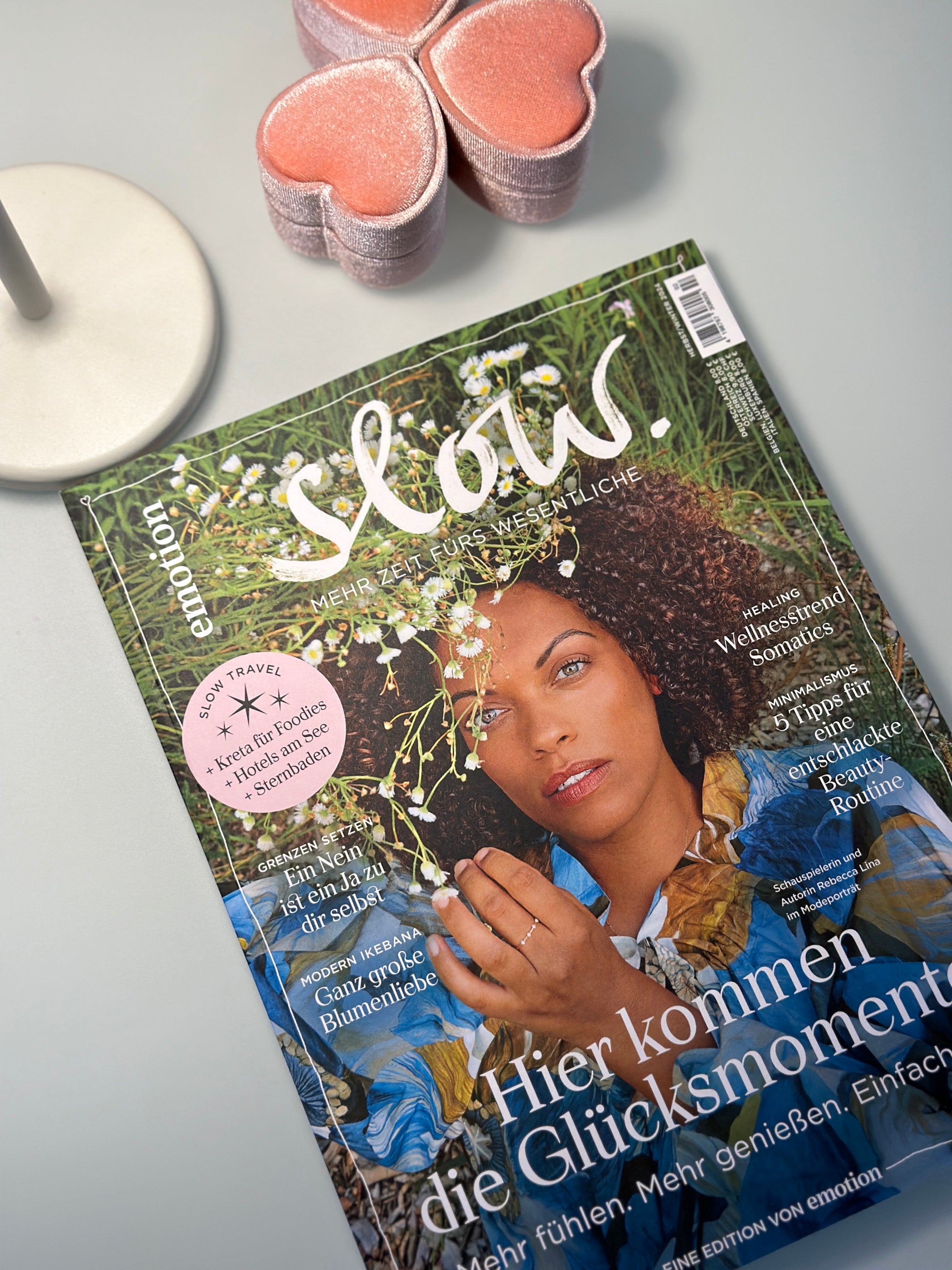 Anhänger KENYA und Kette VENEZIA, gesehen in der Herbst-Winter 2024 Ausgabe des Emotion Slow Magazins