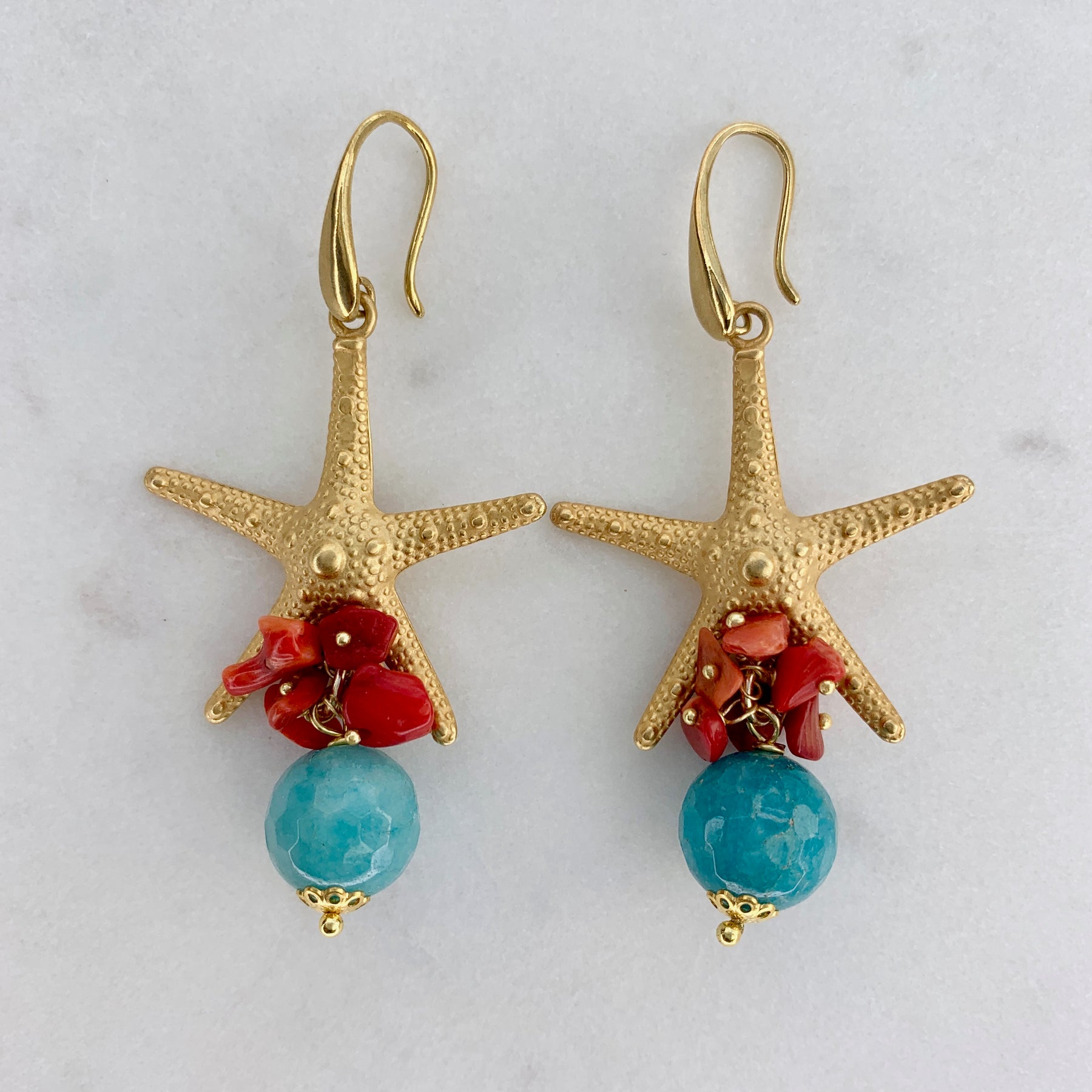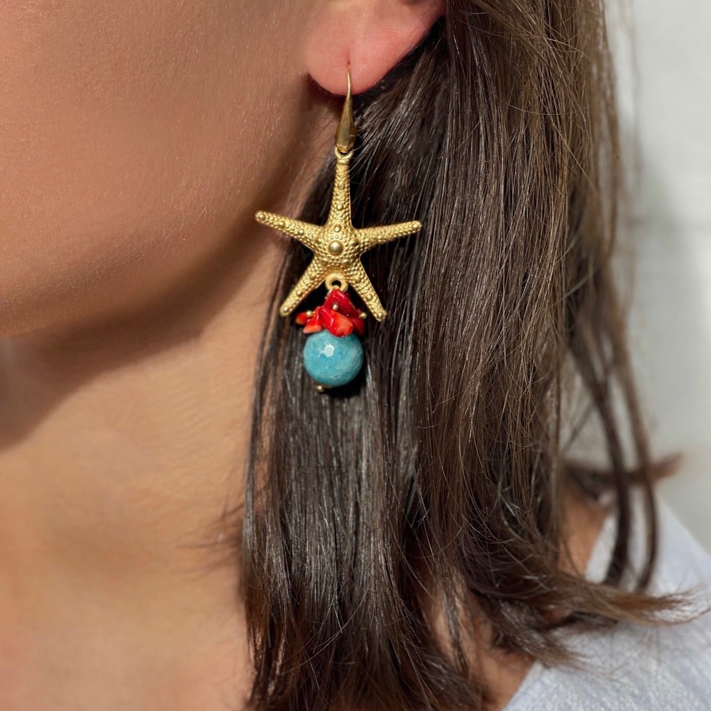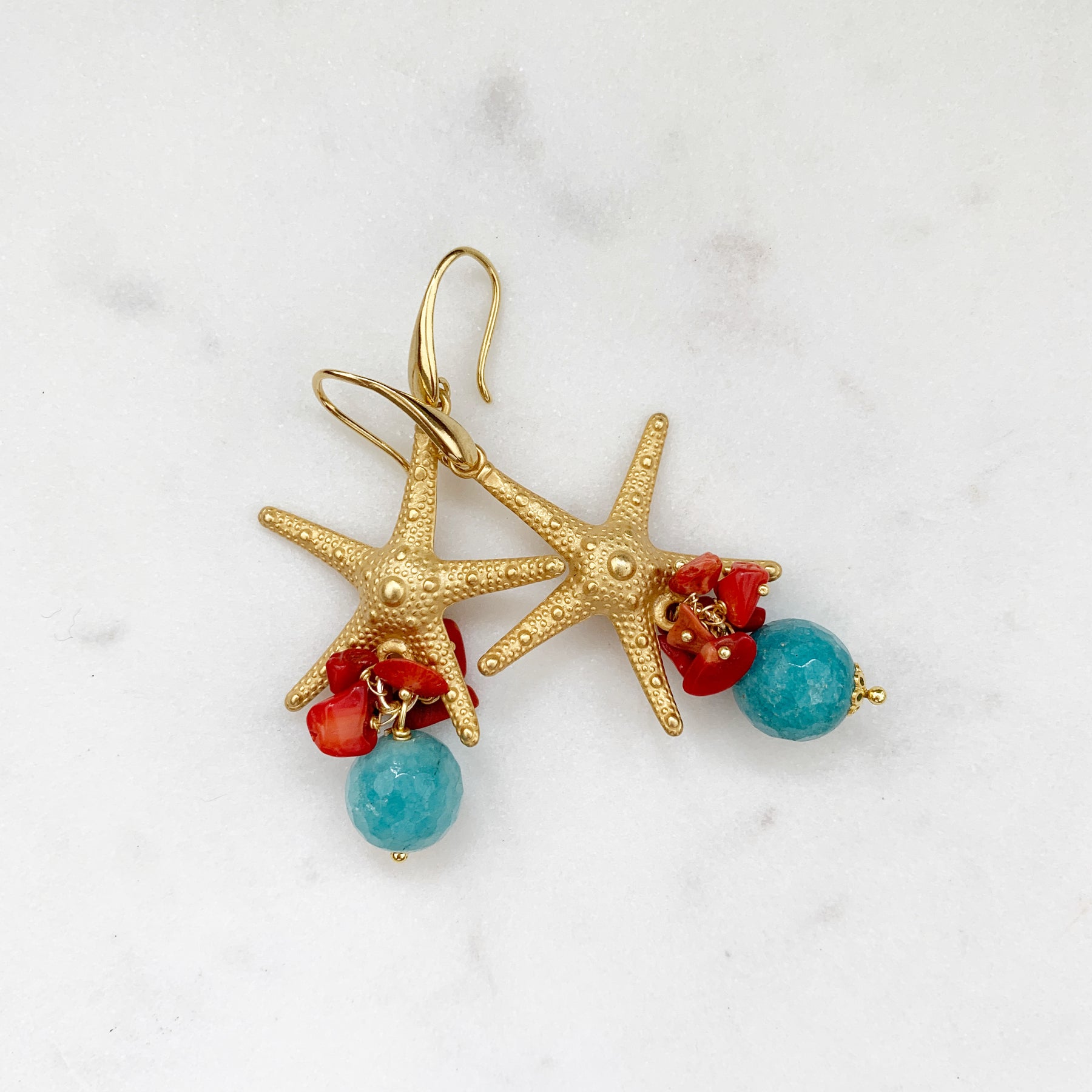 Ohrringe SICILY LOVE Seestern mit Jade und Koralle - 70mm Länge