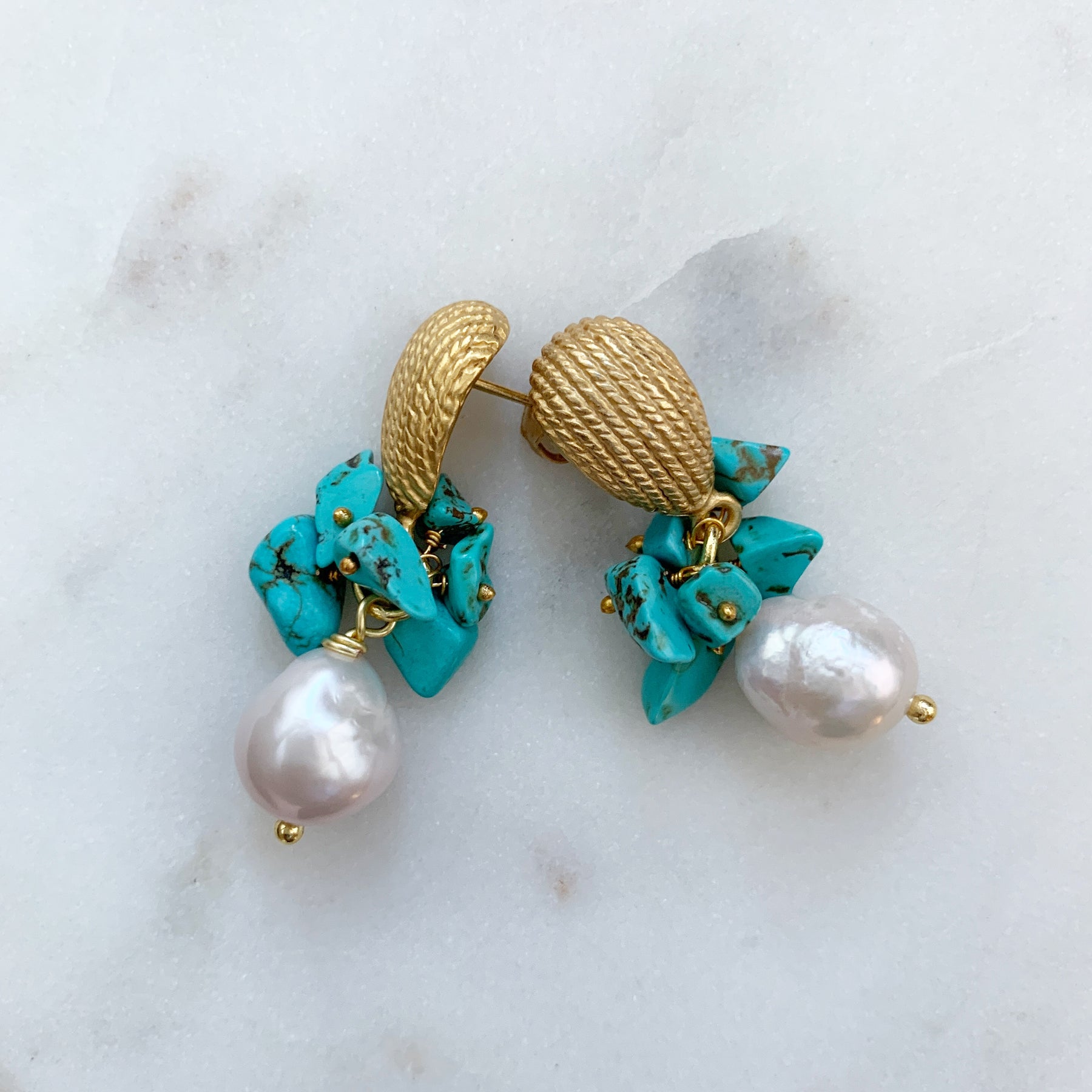 Ohrringe SICILY LOVE Perlen im Barockstil mit Türkisen - 40 mm Länge
